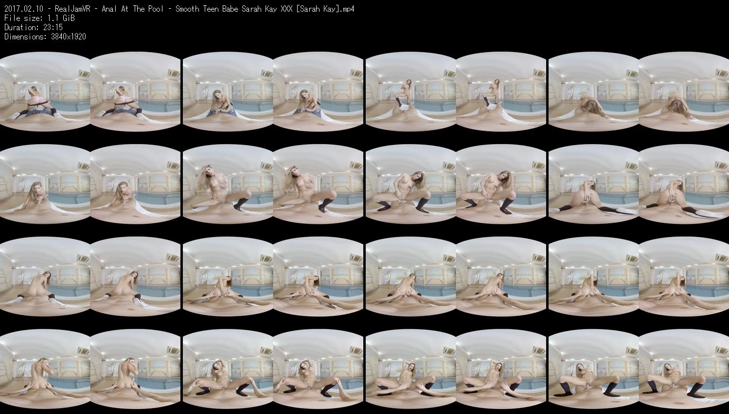 RealJamVR, is VR porn like never before. Sarah is being fucked beside the pool in a cowgirl position. Enjoy the immersive experience of her body while she looks at you.