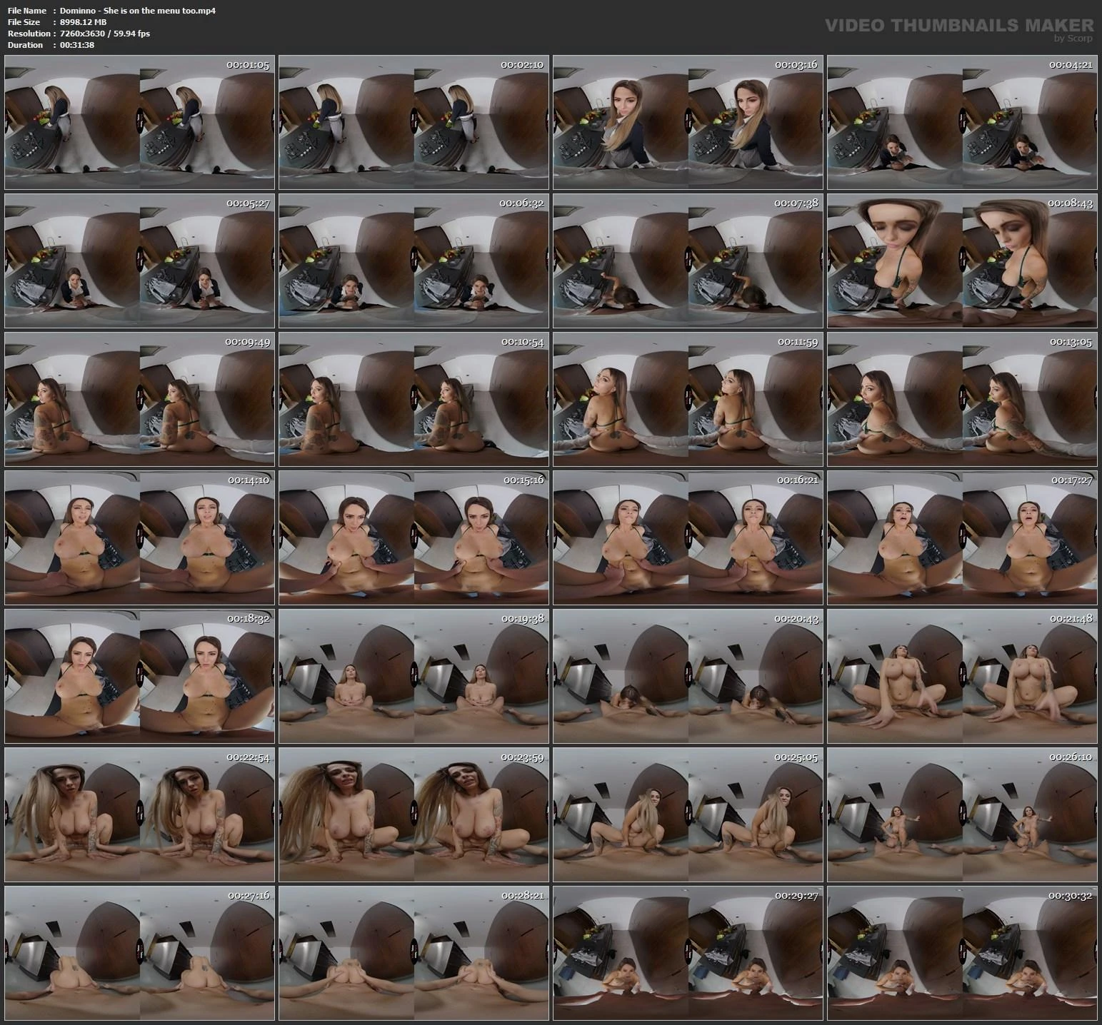 One of her best students wanted to help make her broadcasts more professional. He let her know that also worked on set doing camera for VR Porn Scenes and offered his services in exchange for private cooking lessons. The thought of her handsome student shooting porn has Dominno imagining him naked. In this VR porn video, she teases you behind the counter, bending over and giving you flirty glances. You surprise her by reaching under her skirt. Forgetting that she is live in front of her class, she moans as your fingers touch her damp pussy. Turning around, the horny teacher finds that her student is sporting a big hard cock and she just can’t help herself. She has to taste it. With the camera still rolling she takes you into her mouth and slides her lips gracefully up and down your throbbing pole. She takes out her huge tits and bounces them up and down for you. With the class still watching, their horny teacher bends over her counter and gets plowed hard from behind. Your big dick fills her pussy and she screams out for more right on the same surface she was cooking on. Taking her down to the floor you let Dominno ride and shake her huge melons while her pussy swallows every inch of your meat. The hungry cooking teacher grabs your dick and milks him into her mouth and all over her face. After this, every male student is going to want private lessons from their sexy, slutty instructor.